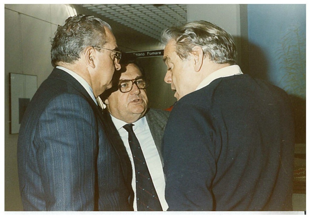 1987 - Gian Antonio Romanini (president of Italian Rowing Federation), Giovanni Mercanti (vicepresident of Italian Rowing Federation) and Thomas Keller (FISA President) in the National Rowing Centre